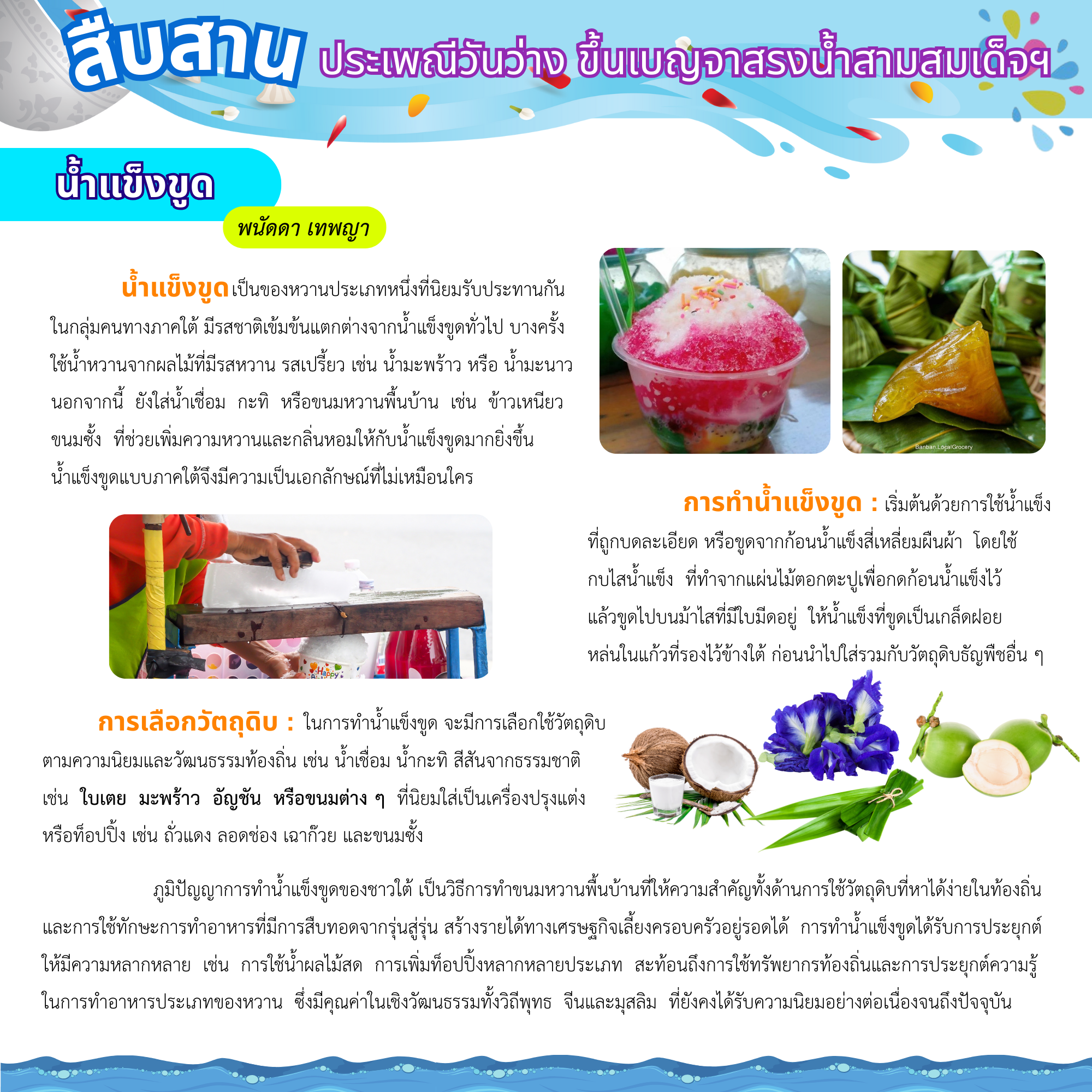 • อาหารพื้นบ้าน : น้ำแข็งขูด - นางพนัดดา เทพญา