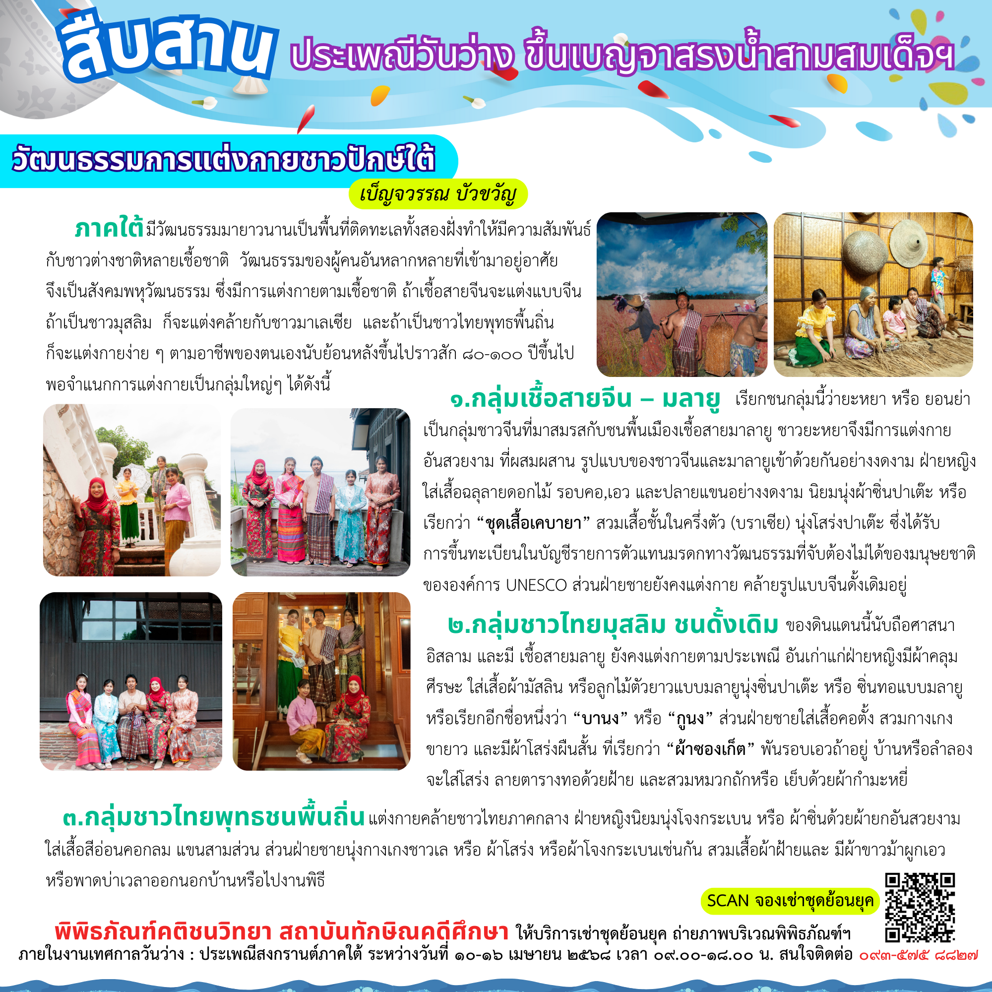 • วัฒนธรรมการแต่งกายชาวปักษ์ใต้ (ห้องผ้าทอพื้นเมือง) - นางสาวเบ็ญจวรรณ บัวขวัญ